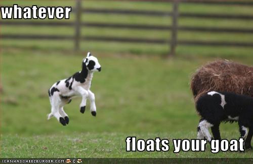 Meme whatever floats your goat. Goats whatever floats your goat. Whatever floats your goat phrase used instead of whatever floats your boat to describe that any course of action is acceptable with the person that says it. View gallery random image. Dopl3r has all the entertainment with all kinds of memes gifs and graphical jokes. Funny steampunk whatever floats your goat humor. Goats are more bouyant than boats. Therefore the phrase is more flexible than boats.